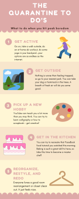 For me, personally, I have only been experiencing the “quarantine lifestyle” for about a week and a half, but I have already found myself turning to alternative, quite odd I must add, methods of spending my time. Between classes being online and every possible extracurricular or social-stimulating activity being cancelled, I have been left with quite a chunk of time on my hands.