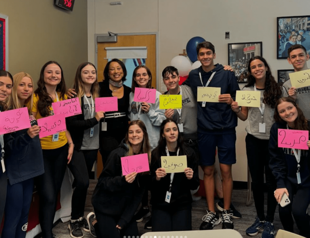 “My host sister’s name is Layan, and she told me the English classes they take are very advanced. They are not allowed to speak Arabic at all in the class and they analyze difficult texts, just like how we do, such as McBeth,” said Carolina Marquez, an Ursuline sophomore.
