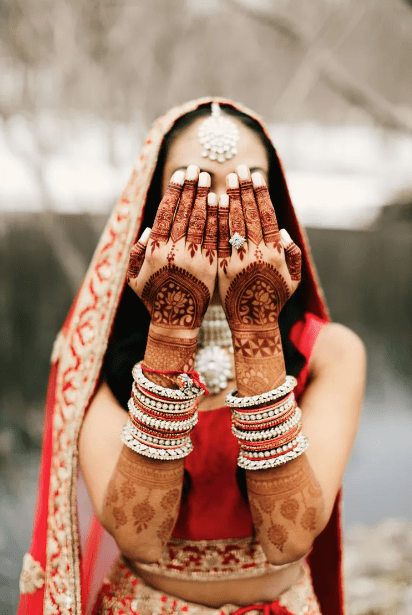 “Usually, the darker the shade of henna, the longer the design will last. Savla continued, saying that one would usually get more color on the warmer parts of the body—especially the palms, She shared that designs on the palms are usually most intricate and sometimes draw out a story using symbols and illustrations of the bride and groom.”